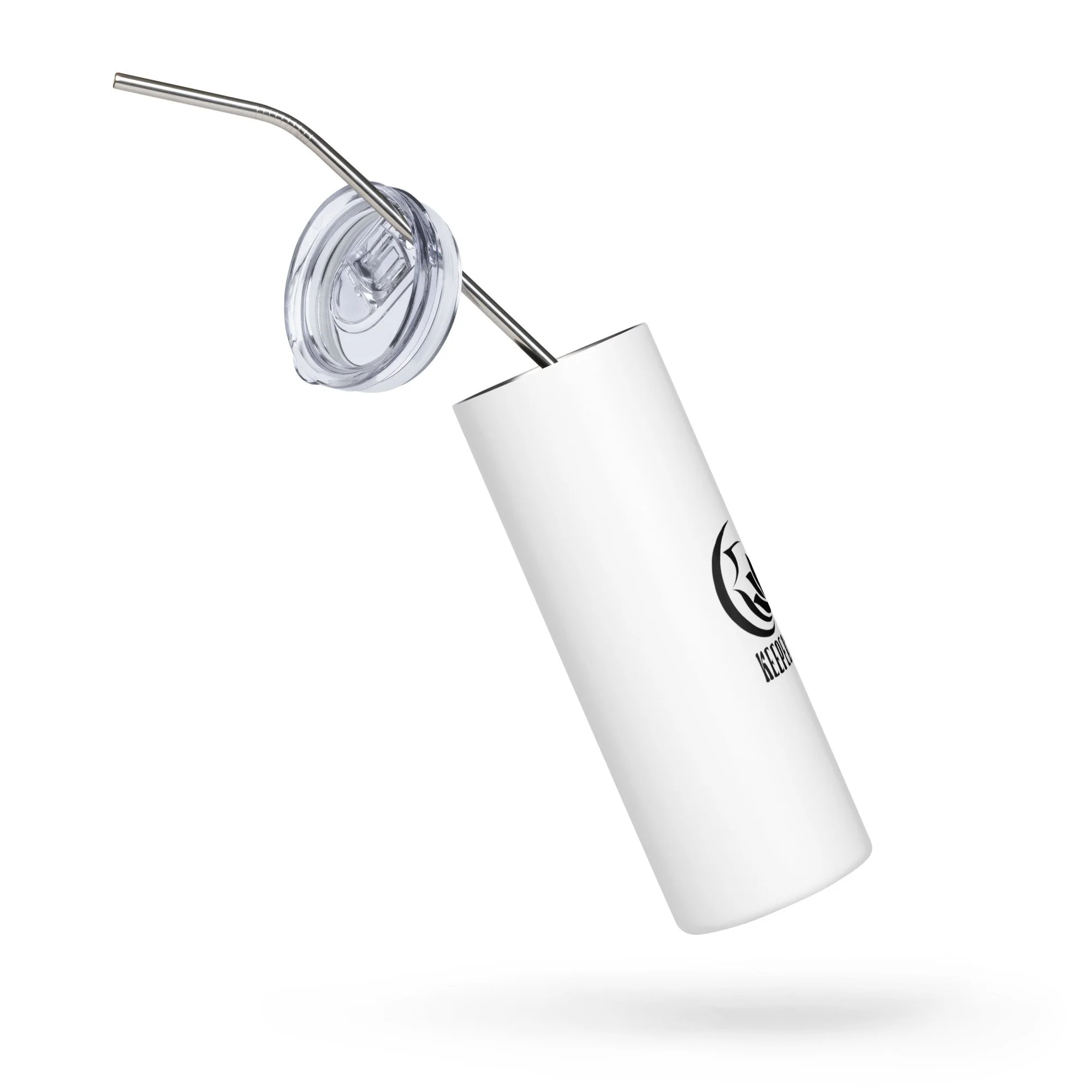 Enjoy hot or cold drinks on the go with this stylish stainless steel tumbler! This reusable tumbler with a metal straw is a perfect combo for hot or cold drinks at any time of the day.